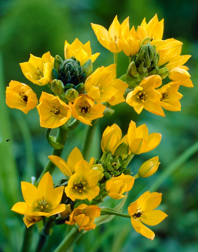Орнітогалум Дубіум Єлоу — яскравий весняний акцент з сонячно-жовтими квітками, зібраними у щільні суцвіття. Цвіте у травні–червні, прикрашаючи клумби, контейнери та рокарії. Полюбляє теплі, сонячні місця й добре дреновані ґрунти. У прохолодному кліматі рекомендується викопувати на зиму або вирощувати в горщиках.