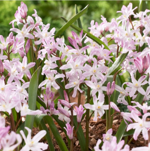 Хіонодокса Пінк Джіант — ніжна весняна квітка з рідкісним рожевим забарвленням. Утворює компактні кущики, зацвітає однією з перших — вже в березні. Чудово виглядає на альпійських гірках, у рокаріях та під деревами. Невибаглива, морозостійка, швидко розростається.
