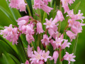Гіацинтоїдес Хіспаніка Пінк — ранньовесняна цибулинна рослина з ніжними рожево-бузковими квітками, зібраними у густі волотисті суцвіття. Цвіте у березні–квітні, створюючи яскраві та ніжні акценти у саду. Ідеальна для рокаріїв, бордюрів і клумб. Морозостійка, невибаглива, любить сонячні або напівтіньові місця з дренованим ґрунтом.