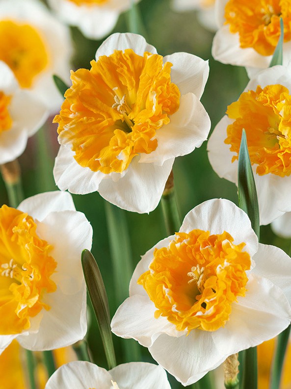Нарцис «Чардаш» належить до великокорончастих сортів і вирізняється яскравим, виразним забарвленням. Його велика, декоративна коронка насиченого кольору гармонійно поєднується зі світлими, ніжними пелюстками, створюючи ефектну контрастну композицію. Стебла міцні та прямі, що забезпечує стійкість квітки, а вузьке, зелене листя підкреслює красу та чіткість форми нарциса. «Чардаш» чудово підходить для висаджування у квітники, рабатки або для зрізання в букет, додаючи весняного шарму та яскравості будь-якому садовому ансамблю.