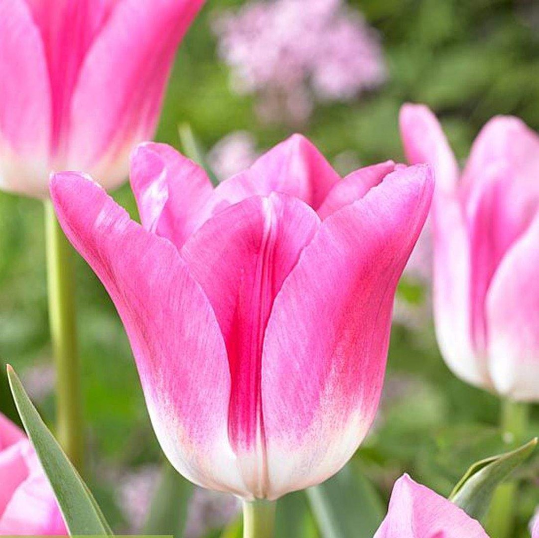 Тюльпан «Роял Тен» тріумф відзначається ніжним поєднанням рожевого та білого кольорів, що створює ефект градієнту на пелюстках. Його класична форма тріумф надає бутону чітку, гармонійну структуру, а стійкі, прямі стебла підтримують квітку в оптимальному положенні. Листя світло-зелене, гладке та елегантне, підкреслює ніжність забарвлення квітки. Цей сорт прекрасно виглядає як у садових композиціях, так і у зрізаних букетах, додаючи легкості та романтичного настрою.