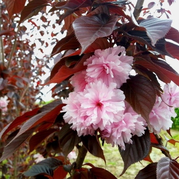 Популярний, декоративний сорт сакури протягом всього сезону. Темп росту повільний, висота дорослої рослини 6-8 м. Цей сорт неперевершений забарвленням листя – воно пурпурне, блискуче, овально-видовжене, велике. Восени листя стає помаранчевими. Квітки махрові, пурпурно-рожеві, діаметром 6 см, в суцвіттях по 3-5 шт. Рясно цвіте з березня по травень. Плоди схожі на дрібну вишню, їстівні, кислуваті з гірчинкою. Висаджувати сакуру потрібно на сонячних, захищених від вітру місцях, на легких, родючих і помірно зволожених ґрунтах. Морозостійка.