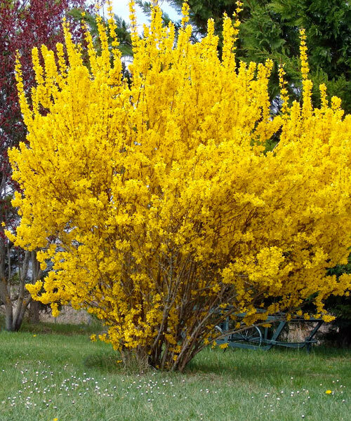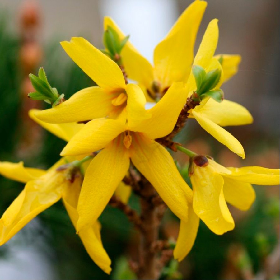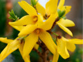 Кущ компактний, округлий, до 0,7 м. Починає цвісти як сходить сніг, дуже ранньою весною до розпускання листя – березень-квітень. Квіти яскраво-жовті, схожі на дзвоники, дуже рясно прикрашають кущ – квіти по всій довжині пагону. Листя зелене.