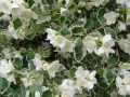 Жасмин чубушник Вар'єгата — декоративний кущ до 2,5 м заввишки з запашними білими квітами та яскравим строкатим листям із кремовою облямівкою. Цвіте у червні–липні, дуже ароматний. Морозостійкий, невибагливий, ідеальний для живоплотів, групових і солітерних посадок. Декоративний увесь сезон.