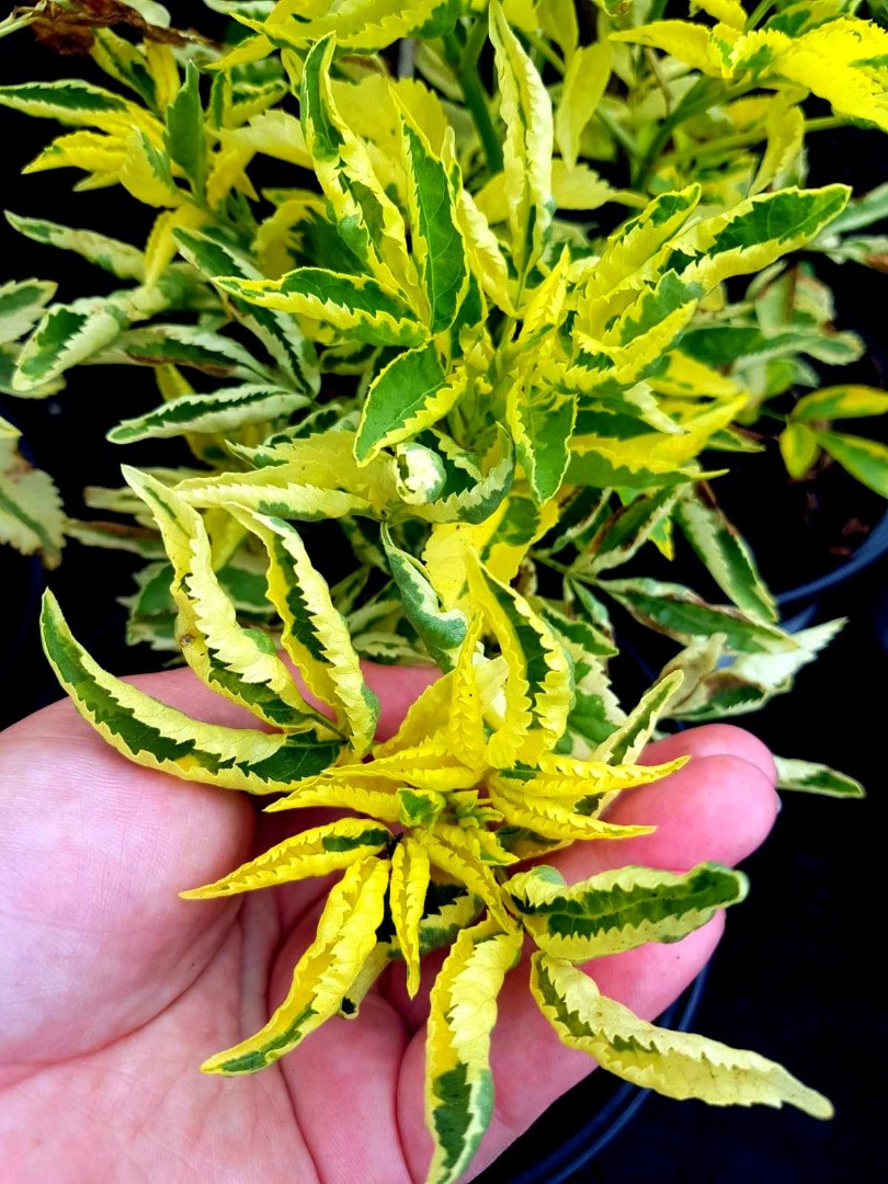 Надзвичайно декоративний сорт протягом всього вегетаційного періоду, вирізняється великим зеленим листям з широкою біло-жовтою облямівкою. Квіти білосніжні, зібрані у великі суцвіття. Квітне в червні-липні. Ягоди чорні. Кущ заввишки та завширшки до 2 м.
