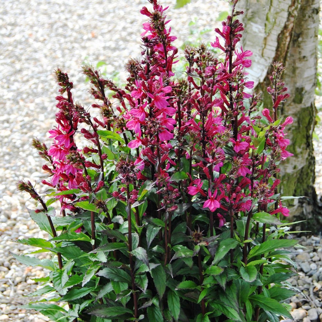 Лобелія Діп Роуз формує колос усипаний яскравими, великими (до 3 см у діаметрі), незвичайними численними квітками-суцвіттями, темно-рожевого кольору. Цвіте з липня до серпня. Добре росте на помірно вологих суглинних або супіщаних ґрунтах. Теплолюбива, найбільшої декоративності досягає на відкритих, сонячних місцях.
