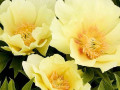 Середньорослий кущ заввишки 65–75 см. Квіти великі, ніжно-жовті з легким рожевим відтінком у центрі, мають приємний легкий аромат. Цвіте в середині весни — на початку літа. Морозостійка, невибаглива до ґрунтів.