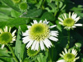Ехінацея Нуга (Echinacea ‘Nougat’) — компактний багаторічник із незвичайними кремово-білими махровими квітками, схожими на помпони з зелено-жовтим центром.