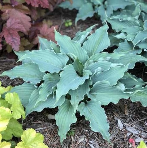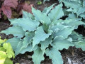 Хоста Ватерслайд — декоративний сорт із великими овальними листками ніжно-зеленого відтінку з широкою кремово-жовтою облямівкою, що з часом стає м’якшою та більш гармонійною. Кущі формують щільну, акуратну розетку, утворюючи ефектний ґрунтовий покрив у тіні або напівтіні. У середині літа з’являються високі квітконоси з ніжними лавандовими квітками, які приваблюють метеликів і додають витонченості композиціям. Сорт невибагливий, морозостійкий і стійкий до захворювань, ідеально підходить для бордюрів, міксбордерів та затінених ділянок саду.