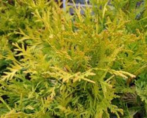 Невелике дерево конічної форми. Вічнозелена конусоподібна з дуже густо-розгалуженими, вертикальними гілками, дуже декоративними, злегка закрученими.Хвоя яскрава золотисто-жовта, при розпусканні яскраво жовта, взимку бронзова. Зростає повільно. Річний приріст 5-10 см у висоту і 5 см в ширину. Висота дорослої рослини до 3-4 м. До грунтів невимоглива, але полюбляє родючі суглинки. Любить сонце,півтінь.В тіні втрачає декоративність хвої - зеленішає. Використовують для одиночних посадок, декоративних груп, бордюрів, альпінаріїв.
