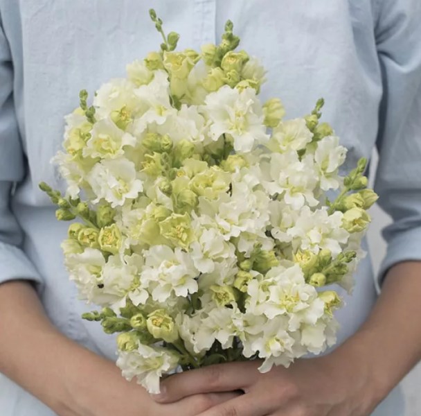 Антірріум Мадам Батерфляй Айворі формує елегантні високі стебла, густо вкриті махровими кремово-білими суцвіттями з ніжною хвилястою фактурою. Кожна квітка нагадує легкого метелика, що створює враження повітряної, майже мерехтливої хмари світлих тонів у саду. Рослина цвіте тривало й рясно, добре переносить сонячні ділянки та спекотні періоди, зберігаючи свіжий вигляд упродовж усього сезону. Мадам Батерфляй Айворі чудово підходить для клумб, бордюрів, міксбордерів і зрізу, додаючи композиціям витонченості та ніжної світлої палітри.
