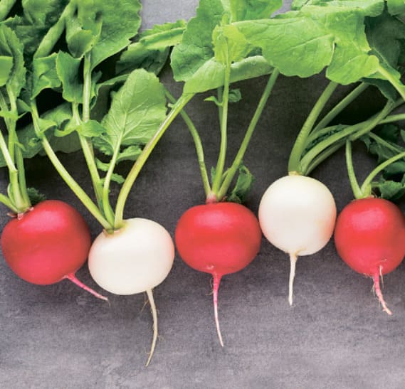 Відповідно до своєї назви, cerises de bresse, це редис розміром із велику вишню. Головна інтрига цієї суміші полягає у поєднанні чистих кольорів білого та червоного. Тож не дивно, що це старовинний класичний фаворит долини бресса у франції! Ці редиси у своєму поєднанні дають дуже гармонійний смак – ніжність та особлива насолода білого доповнюється насиченістю та пікантністю червоного. Їхня текстура свіжа, щільна і хрумка, без гострого перцевого смаку. Ця суміш, що швидко дозріває (20-25 днів від сходів), відносно довго тримається в жарку погоду, завдяки своєму походженню. Але для отримання редис вищої якості, її вирощують дуже рано навесні, а в основному – наприкінці літа. Для отримання чистоти кольору насіння цих двох редис вирощують окремо один від одного, змішуючи їх перед посівом.