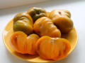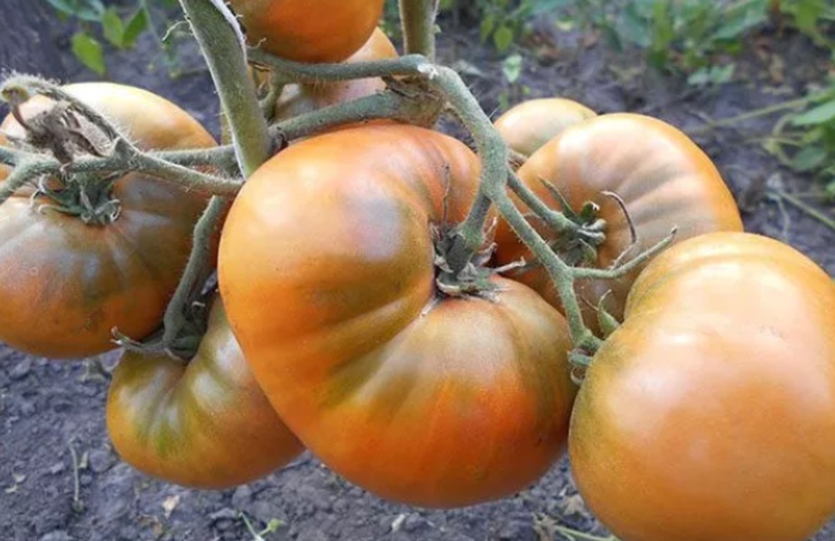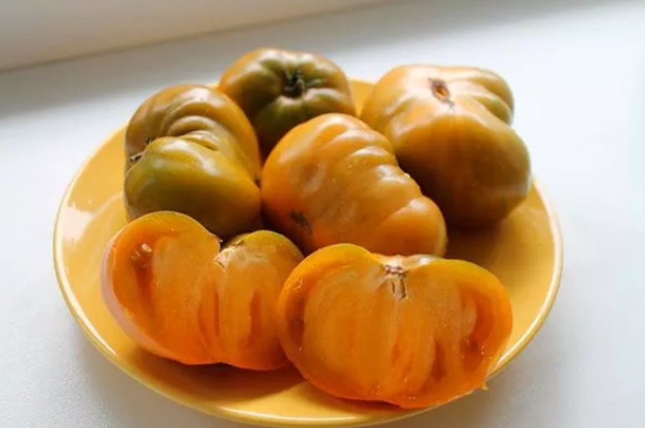 Яскравий представник детермінантних томатів, які не потребують абсолютно жодного формування, лише обмеженої підв'язки. Плоди яскраві, охристо-глинисті зовні, із зеленими насіннєвими камерами всередині. М'якуш яскраво вираженого салатного типу - масляниста, що тане в роті, солодка, делікатесна. Плоди багатокамерні, але насіння мало. Маса плодів зазвичай понад 200 г. Сорт урожайний, стійкий до фітофторозу. Середньостиглий.