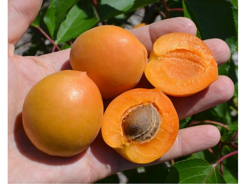 Плоди округлої форми, вагою до 60 грамів. Шкірка злегка опушена, жовто-оранжева. М'якоть соковита, світло-оранжева, тане у роті, з приємним кисло-солодким смаком та ніжним ароматом. Кісточка легко відокремлюється. Після достигання плоди не опадають.