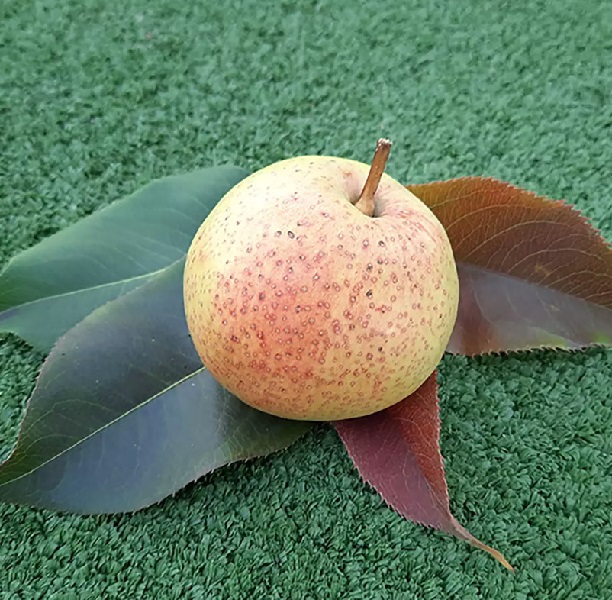 ✔ Зовнішній вигляд: Плоди мають округлу або трохи овальну форму, схожу на яблуко. Шкірка тонка, жовто-зеленого кольору, іноді з легким рум'янцем. На відміну від європейських груш, вона не має характерної грушоподібної форми.