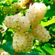 Сорт Біла медова має особливі плоди, вони білого чи бежево-жовтого забарвлення, циліндричної форми, досягають довжини 3-4 см, вагою 5-8 грамів. Мають насичений солодкий смак та п'янкий медовий аромат. Шовковиці найчастіше вживають у свіжому вигляді, засушеними, з них готують варення, компоти, соки, пастилу.