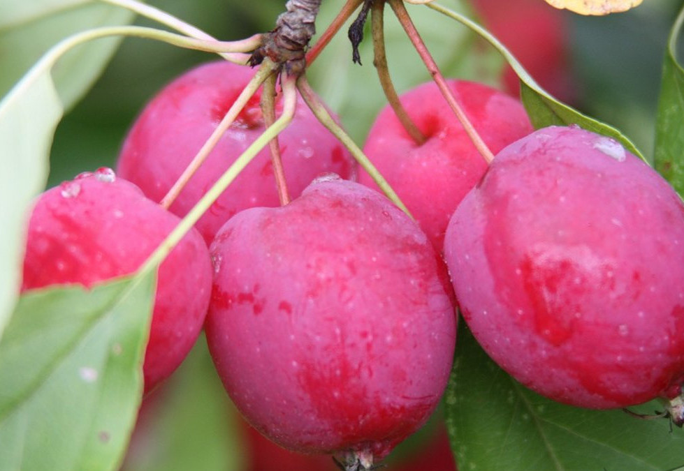 Сорт висодекоративний та суперурожайний! Плоди масою 20-30 г, багряно-червоного кольору. М’якоть кремового кольору, соковита, винно-солодка з сливовим ароматом. Дозрівають в першій половині вересня, зберігаються близько місяця. Сорт самоплідний, стійкий до морозів та хвороб. Починає плодоносити уже на 2-й рік посадки. Підщепа – 54-118.