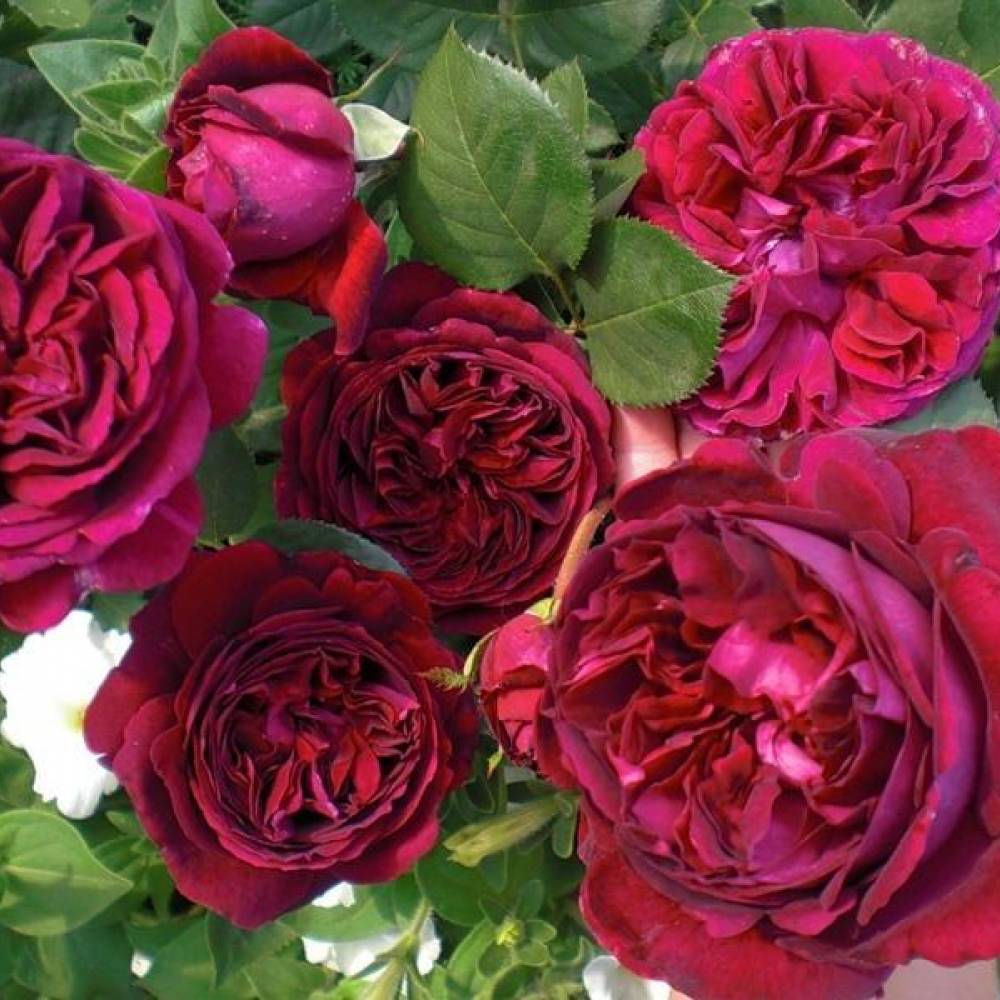 Фальстаф — один із найвражаючих темно-фукцієвих сортів, поєднує класичний старовинний аромат із сучасною витривалістю. Кущова, ідеальна для садів, бордюрів.