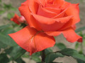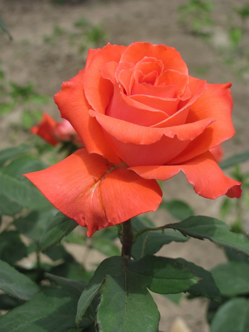 Ця надзвичайно яскрава троянда миттєво привертає увагу завдяки соковитим барвам. Її пелюстки мають вогняно-апельсиновий центр, що плавно переходить у рожевий або малиновий край. Вишуканий вигляд і класична форма роблять її ідеальним вибором як для саду, так і для зрізу.