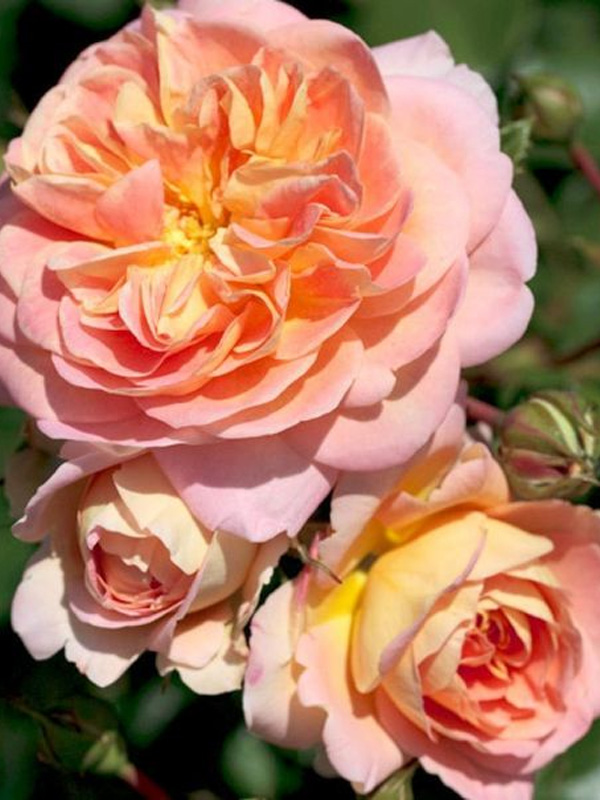 Квітки великі, махрові, діаметром 8–9 см, з квартированою формою пелюсток мають блідо-персикове забарвлення з блідо-жовтим центром. Дарує легкий, приємний аромат.
