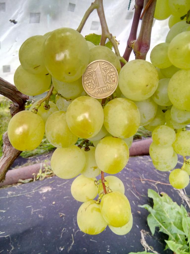 Середньоранній, високоврожайний, високотоварний, транспортабельний, лежкий та хворобостійкий сорт. Має незрівнянний смак – дуже солодкий з мускатними нотками. Гроно 0,5-0,6 кг. Ягоди 12-16 г, хрусткі, соковиті, не розтріскуються, осами не вражаються. Витримує пониження температури від – 200С, деякі аж до – 260С!