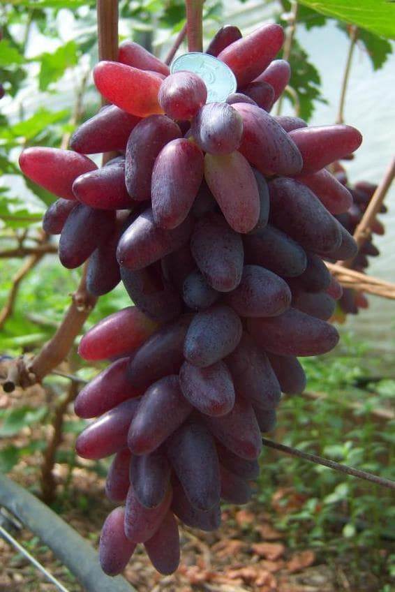 Ранньосередній, високоврожайний, високотоварний, транспортабельний та хворобостійкий сорт! Грона масою до 1,2 кг. Ягоди довгасті, темно-червоні, не розтріскуються. Вага кожної ягоди від 14 до 16 г, довжиною до 5 см. М’якость соковита. солодка, гармонійного смаку. Шкірка не відчувається.