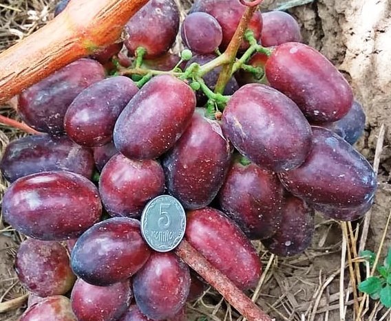 Рання перспективна гібридна форма, вирізняється дуже великими ягодами – 25-30 г! Грона дуже великі,