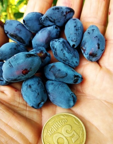 Жимолость Блю Треже – сорт середньопізній, високоврожайний, високотоварний, транспортабельний та хворобостійкий. Ягоди великі, округлої форми, 2-3 см в діаметрі, дуже соковиті, кисло-солодкі, ароматні, без гіркоти. Не обсипаються. Відрив сухий. Шкірка тонка, але міцна.