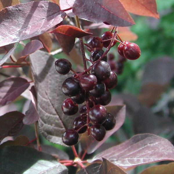 Абсолютно неприхотливый сорт черемухи, отличается ярко-зелеными листьями весной, которая уже в мае становится бордово-фиолетовой и сохраняет свой цвет в течение лета, а осенью добавляются теплые оттенки – становятся бордово-оранжево-красными. Цветет в мае, цветы мелкие, бело-розовые, чрезвычайно ароматные. Осенью появляются черные округлые плоды, собранные в кисть. Что придает особую декоративность. Дерево 5-8 м.