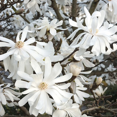 Обширный куст с округлой кроной, высотой и шириной 2,5-3,5 м, при благоприятных условиях достигает в высоту 6 м. Цветы с 18-25 лепестками, похожие на звезду, белые, ароматные, появляются до распускания листьев, в апреле. Хорошо переносит морозы - до -37 ° C!