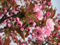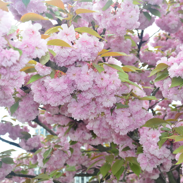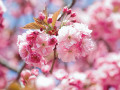 Фото сакуры Канзан поражают своей красотой - практически все дерево в период цветения покрыто темно-розовыми цветками с приятным ароматом. Цветение начинается в мае. Цветки большие - в диаметре могут достигать 5 см, образуют соцветия, которыми усыпаны ветки по всей длине.
