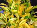 Ноябрьский куст высотой и диаметром до 2 м. Выделяется не только ранним, обильным цветением, но и высокодекоративными листьями – очень декоративна в течение всего вегетационного периода! Листья зубчатые, темно-зеленые с бело-желтой каймой по краям. Цветет в апреле, до распускания листьев, ярко-желтыми, колокольчатыми цветами, которые располагаются по всей длине побегов. Засухоустойчивая. Предпочитает солнечные места.