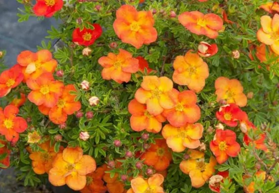 Высотой до 60 см и диаметром 1 м. Цветы диаметром 3 см появляются все лето вплоть до середины X. Весной оранжево-красные, летом оранжево-желтые. Засухо- и морозостойкий.