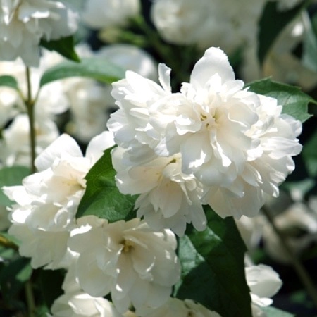 Вертикальная крона, крайние побеги опущены (высота – 2-2,5 м), цветет обильно VI-VII крупными (до 6 см) цветками с тонким ароматом.