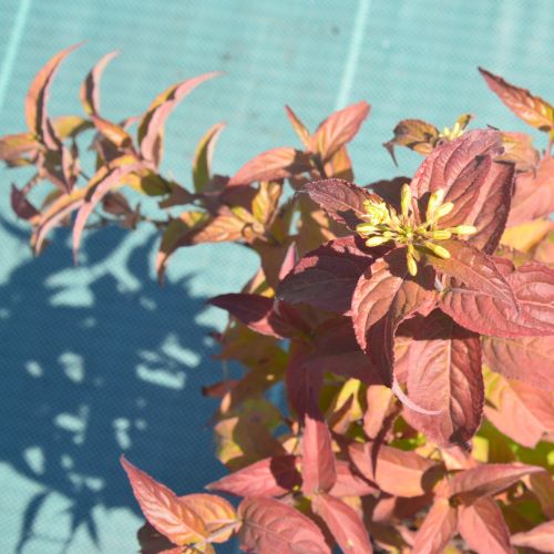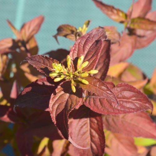 Диервилла Troja Black — декоративный кустарник с необычайно эффектной листвой: весной — с красновато-бронзовым отливом, летом — почти чёрная, а осенью — ярко-оранжево-жёлтая. Цветёт летом мелкими жёлтыми цветами в компактных соцветиях. Сорт устойчив к морозам, засухе и загрязнённому воздуху. Отличный выбор для живых изгородей, бордюров, декоративных композиций.