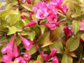 Созданный в 2000 г. сорт вейгелы, что поражает декоративностью. Листья трижды за сезон меняют цвет. Зелено-красное при распускании, впоследствии зеленеет, а с середины лета и до поздней осени - красно-коричневые. Не менее декоративными является его густые колокольчатые соцветия сиреневого цвета. Куст округлый, компактный 0,9-1,2 м высотой и до 1,5 м в диаметре украсит любой садовый участок.