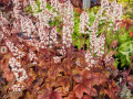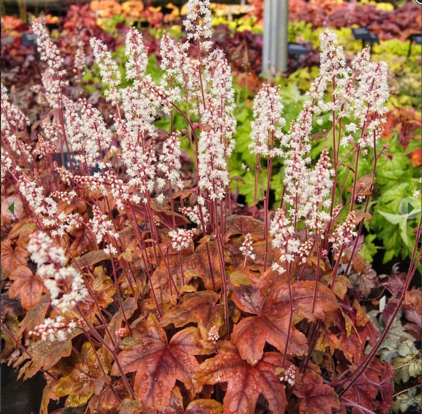 Гейхера Брас Лантерн - это яркий сорт с большим медно-бронзовыми листьями, которые сохраняют декоративность от весны до осени. В июне кремово-белые цветы появляются на высоких цветоностях. Образуется густой куст высотой до 40 см, хорошо растет в полутени и тени. Морозоустойчивый, идеально подходит для бордюров и композиций в затененных участках.