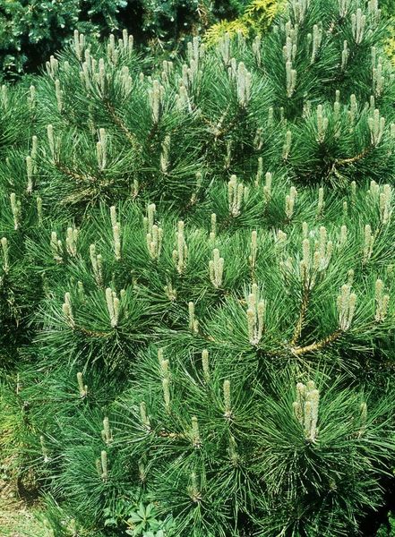 Высота — до 1 м; карликовая, медленно растущая черная сосна с густой, подушковидной или раскидистой кроной; ммеет твердую темно-зеленую хвою и горизонтальные ветви.