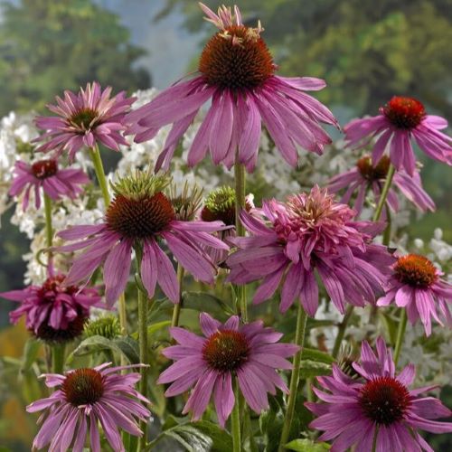 Высота 50–80 см. Это довольно высокий, устойчивый сорт. Цветение: июль – сентябрь. Эффектно смотрится в групповых посадках на газонах, клумбах и в букетах. Привлекает пчел. В первый год после посадки может цвести, как эхинацея обыкновенная (в один ярус). Его знаменитое «двухэтажное» цветение обычно проявляется на второй-третий год, когда куст полностью окрепнет.