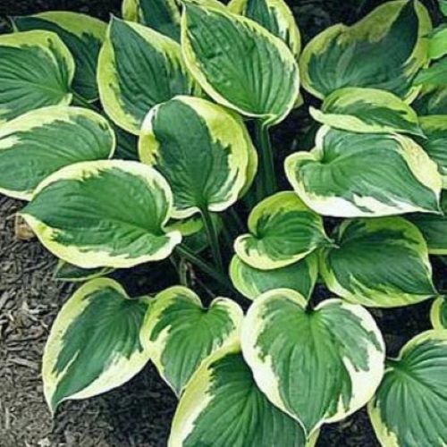 Высота 50-80 см. Цветет в июле-августе нежными сиреневыми или почти белыми цветками, хорошо подходит для тенистых клумб. Центр листа синий, по краям широкая кремово-белая кайма, которая со временем белеет. Его можно выращивать как на клумбе, так и в контейнере.