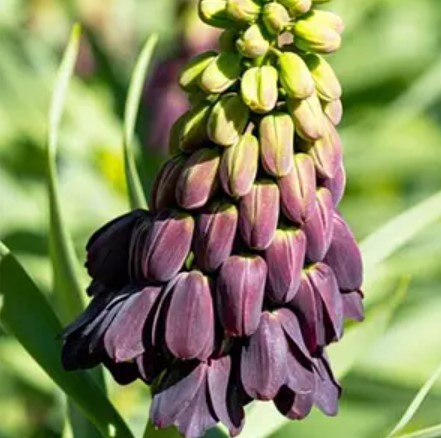 Фритилярия «Пурпл Фаворит» отличается яркими, насыщенно-пурпурными колокольчиковидными цветами, расположенными по несколько штук на вершине высокого стебля. Его узкие светло-зеленые листья подчеркивают глубокий цвет бутонов и добавляют гармоничности растению. «Пурпл Фаворит» отлично подходит для клумб, рабаток и в качестве акцентного растения в садовых композициях, создавая вертикальные акценты и насыщенную декоративную палитру весеннего сада.