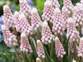 Мускари «Пинк Санрайс» отличаются нежным розовым цветом цветов, который создает мягкий и романтический эффект в весеннем саду. Цветы собраны в плотные, вертикальные гроздьях на сильных стеблях и имеют характерную форму небольших колокольчиков, которые выглядят привлекательно в групповых посадках. Узкие зеленые листья подчеркивают нежность розовых оттенков и добавляет гармоничности композиции. «Пинк Санрайс» отлично подходит для клумб, рабаток, альпийских горок и контейнерного выращивания, заполняя сад весенней свежестью и легкостью.