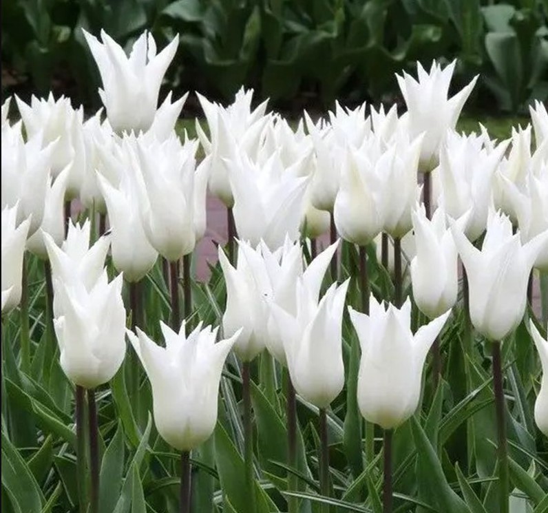 Тюльпан лилиецветный «Вайт Триумфатор» отличается утонченной, стройной формой с узкими заостренными лепестками, которые элегантно раскрываются наружу. Чистый белый цвет придает особую свежесть и легкость, что делает его идеальным акцентом в весенних клумбах и бордюрах. «Вайт Триумфатор» выглядит гармонично в групповых посадках и в срезе, подчеркивая нежность и элегантность сада в течение длительного периода цветения.