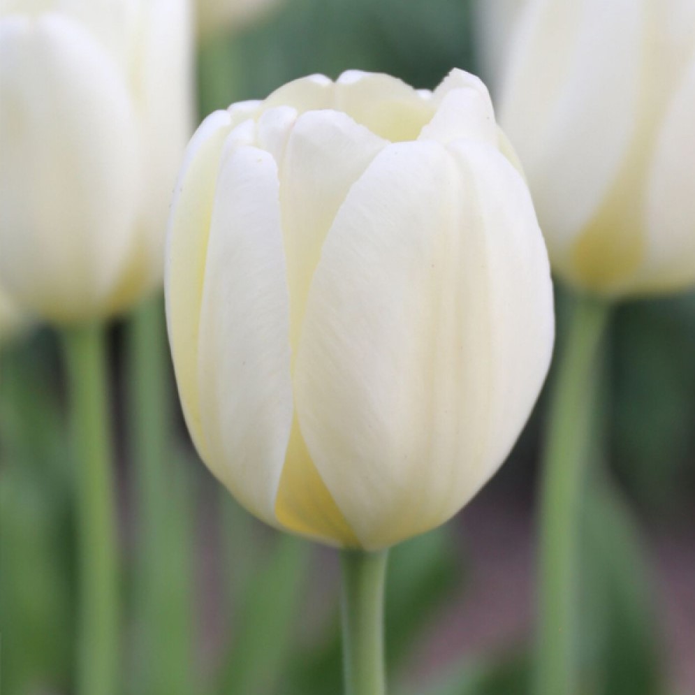 Тюльпан триумф «Айвори Прауд» отмечен нежным кремово-белым цветом, который выглядит элегантно и изящно на любой клумбе. Средний размер цветка имеет классическую чашевидную форму, а мощные стебли обеспечивают стойкость и длительное цветение. «Айвори Прауд» идеально подходит для бордюров, групповых посадок и среза, создавая чувство чистоты, гармонии и спокойной красоты в саду.