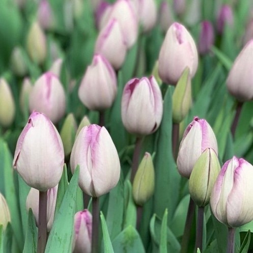 Тюльпан триумф «Джакузи» поражает своей элегантной нежностью и аристократическим внешним видом. Цветок имеет классическую форму, присущую триумф-тюльпанам, с густыми, слегка овальными лепестками, которые гармонично облегают бутон. Основной цвет - чисто белый, но присмотревшись, едва заметен фиолетовый оттенок, который добавляет цветку элегантности и загадки. Стебель прямой, прочный, хорошо поддерживает цветок, а листья сочно-зеленые, гладкие, с легким блеском. «Джакузи» отлично подходит для весенних клумб, бордюров и композиций в вазах, создавая атмосферу свежести и легкости.