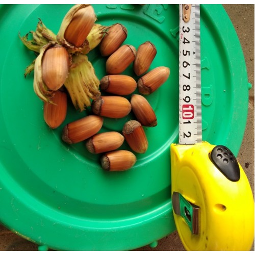 Куст сильнорослый, до 4-х м. Орехи удлиненные, большие – длиной до 3,1 см и шириной до 1,6 см, почти полностью заполняют тонкую оболочку. Сладкие, сочные. Один из самых урожайных!