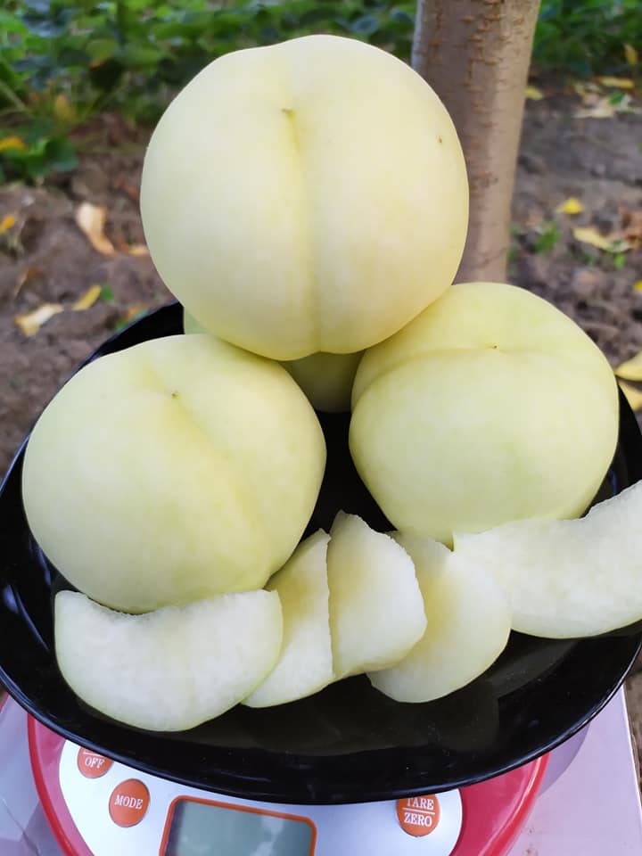 Эксклюзивный сорт абсолютно белого персика – и мякоть, и снаружи белый! Плоды весом 150-300 г (средний вес от 240 г). Очень сочный, имеет насыщенный персиковый вкус и аромат, очень сладкий с нотками ванили и груши, созревает во второй половине августа, не осыпается. Имеет повышенное содержание антиоксидантов, не вызывает аллергии! Устойчив к морозам, кудрявости листьев персика – основной болезни персиков, засухе и перепадам температуры! Стабильно урожайный в любую погоду во всех областях Украины! Цветет поздно – не боится весенних заморозков! Обладает высокими показателями товарности и транспортабельности. Подвой алыча.
