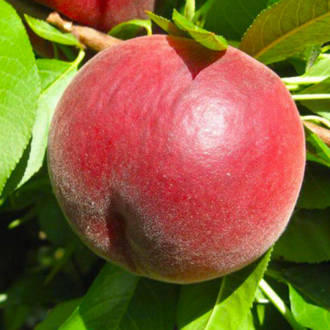 Плоды среднего размера весом 140-160 граммов. Форма плодов округлая, кожица при полном созревании насыщенно-красного цвета. Опушенность практически отсутствует. Мякоть плотная, желтая, сочная, очень вкусная. Косточка отделяется плохо. Дегустационная оценка – 4,9 из 5 баллов. Плоды могут долго висеть на дереве, не гниют и не осыпаются.