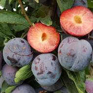Высокоурожайный, высокотоварный, транспортабельный и болезнеустойчивыйОдин из лучших гибридов сливы и алычи! Плоды очень крупные, массой от 100-150 г, некоторые достигают 250 г, созревают в начале августа, не осыпаются. Мякоть темно-бордового цвета, сочная, ароматная, плотная, отличного сладкого вкуса. Подвой алыча.