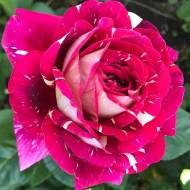 Высота 100-120см, диаметр 10-12 см; полосатый малиново-белый окрас; приятный аромат; цветение обильное, повторное.